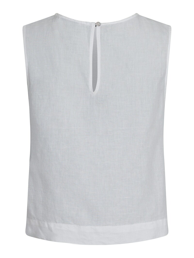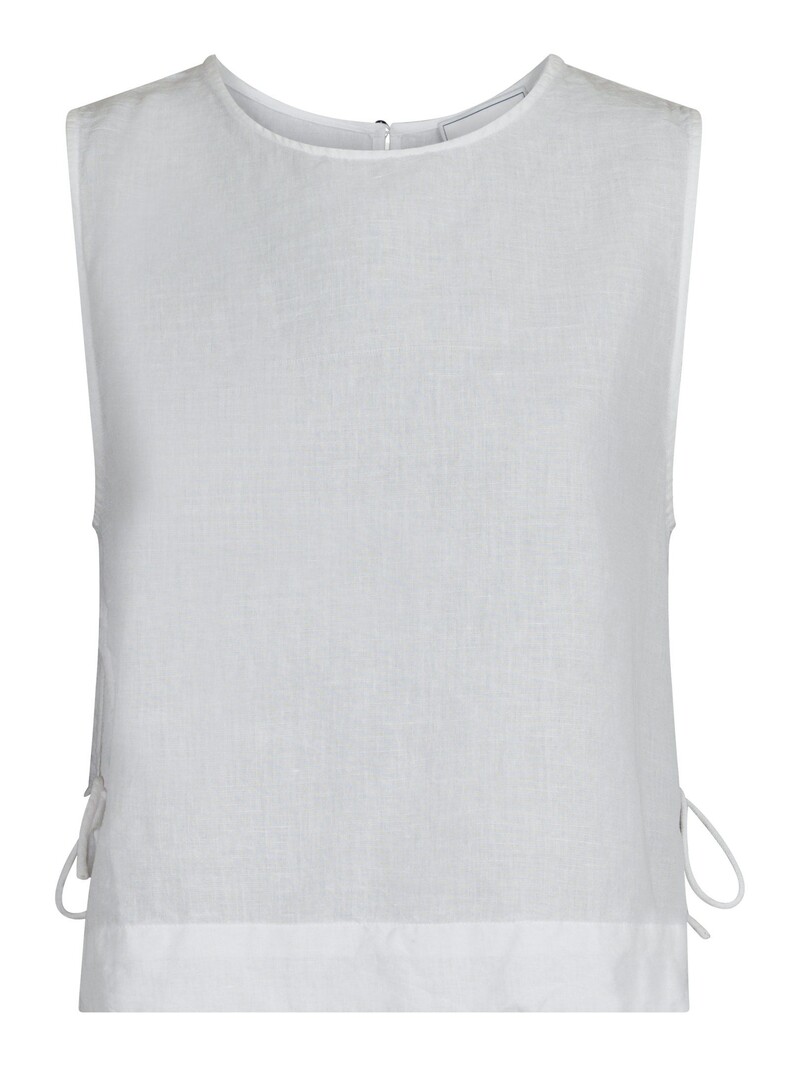 Sød kort top med et klassisk snit i en skøn blanding af bomuld og hør. Toppen har slidser i siderne samt snore. En perfekt, let og elegant top til sommer og forår.