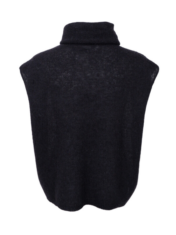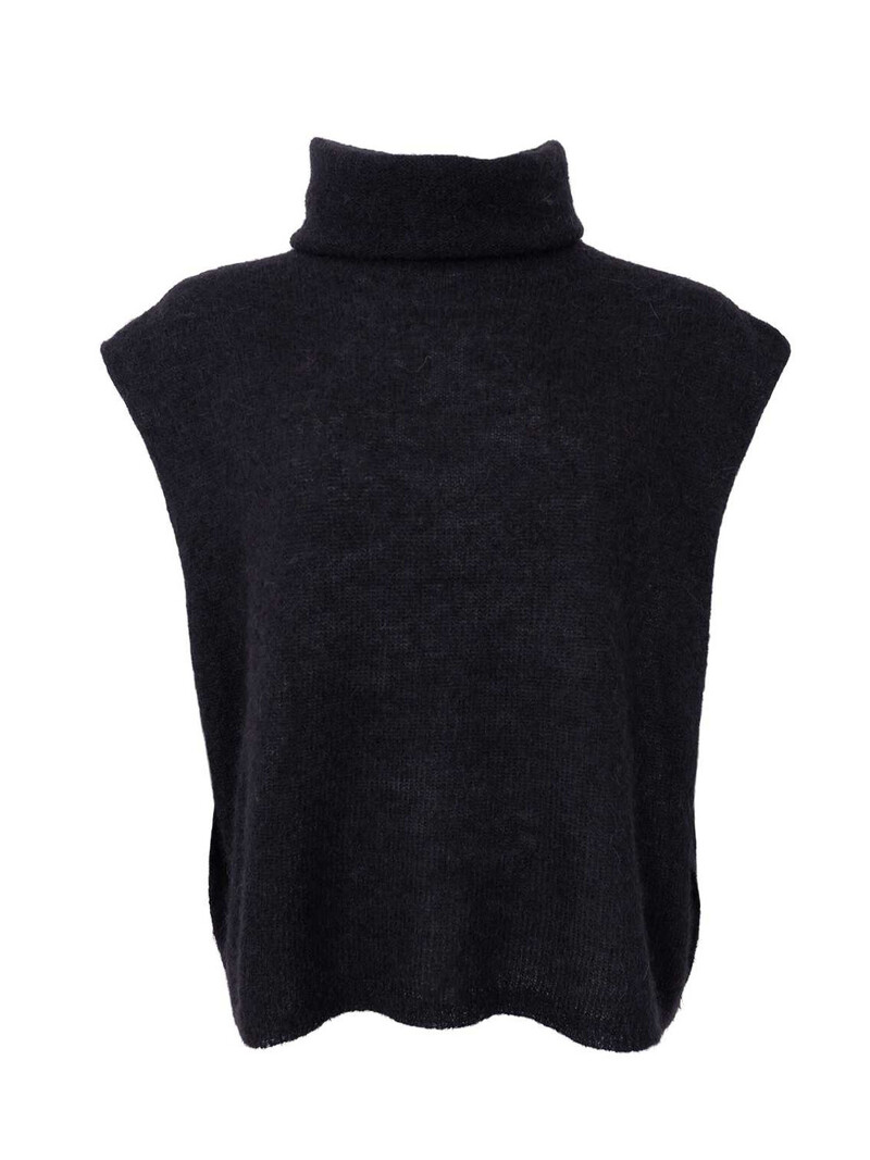 Sød strikket vest fra Black Colour. Vesten har rullekrave, ingen ærmer, og er lækker blød. Perfekt over en langærmet T-shirt, skjorte eller lignende.
