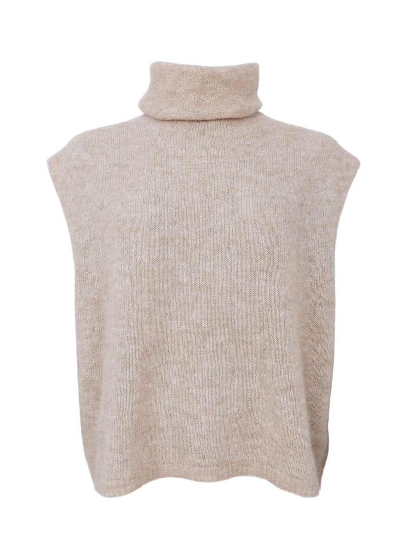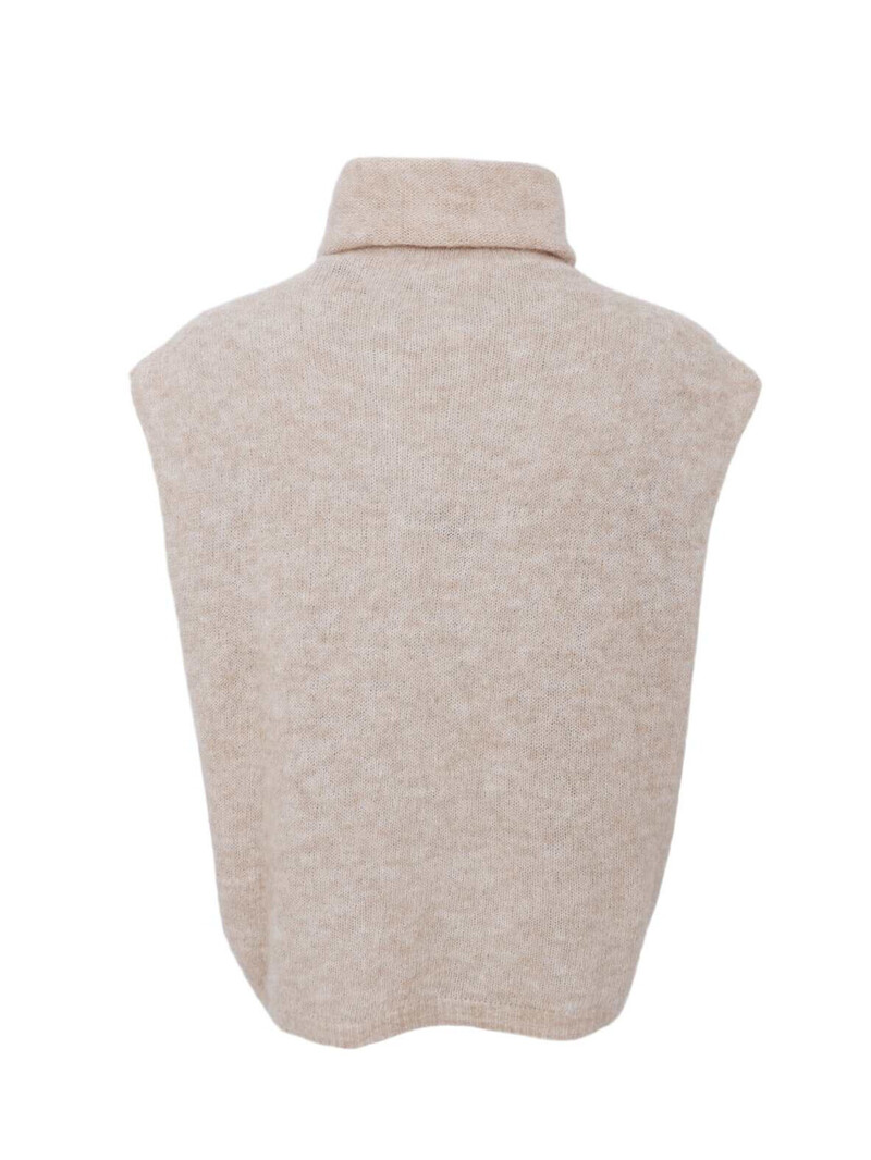 Sød strikket vest fra Black Colour. Vesten har rullekrave, ingen ærmer, og er lækker blød. Perfekt over en langærmet T-shirt, skjorte eller lignende.