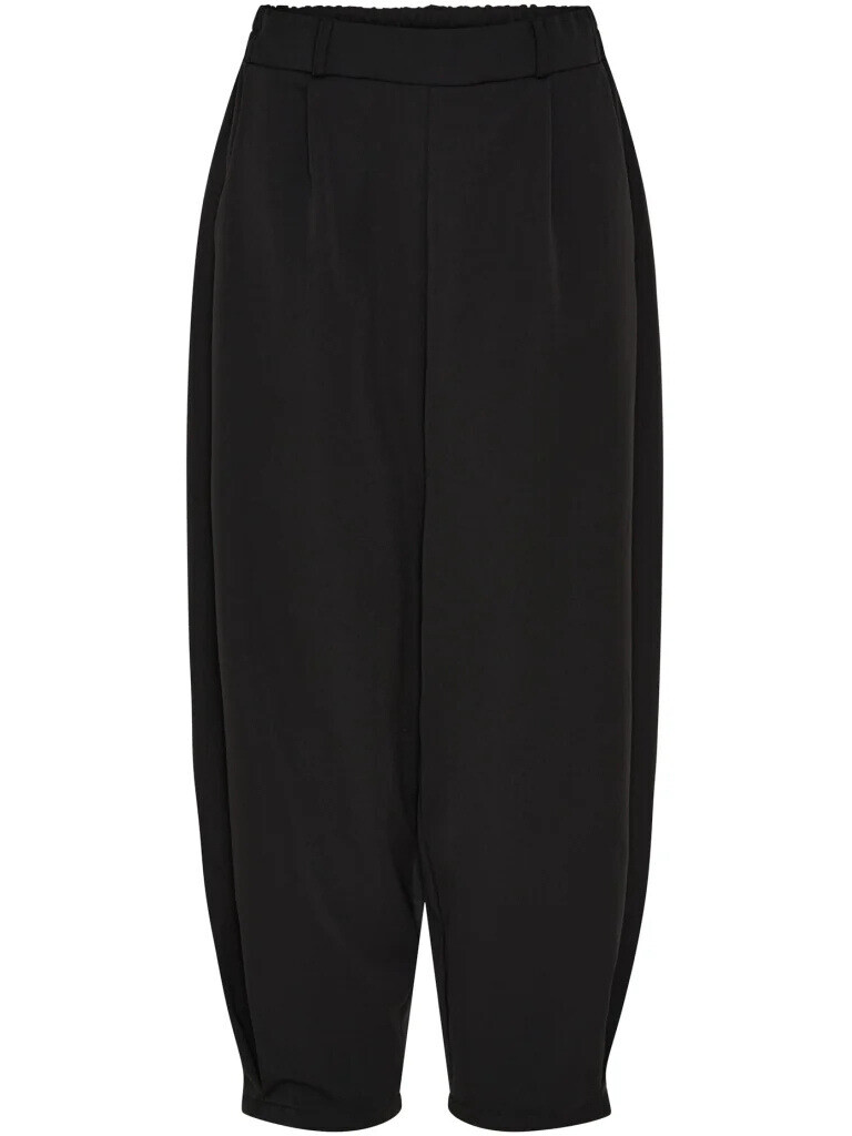 Smarte bukser fra Marta. Bukserne har en afslappet pasform og går ind nederst i benet, som giver en ballon effekt. De har bæltestropper og elastik i taljen, hvilket sikrer komfort.