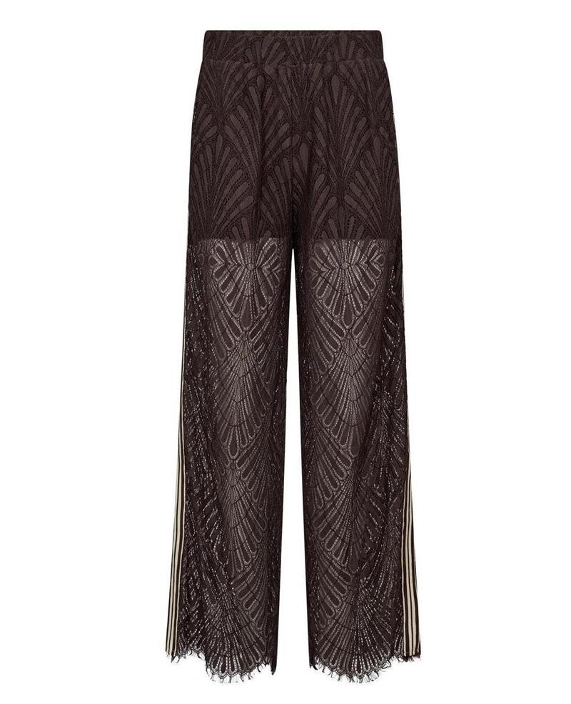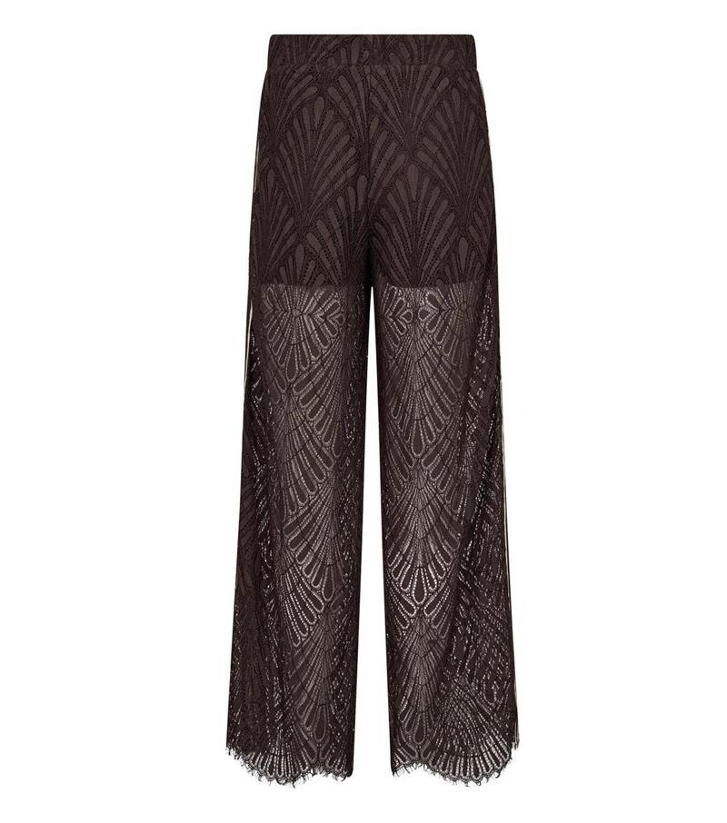 Smukke blondebukser fra Co' Couture i brun. Leti Lace Panelpants er med elastikkant i taljen, lommer i siderne, løse ben, som har en fin bølget kant forneden. Bukserne har desuden trackbånd detaljer med striber på siderne. Er i en transparent kvalitet, hvor der er indershorts i den øverste del. Style den med matchende bluse for et virkelig fint og feminint sæt.