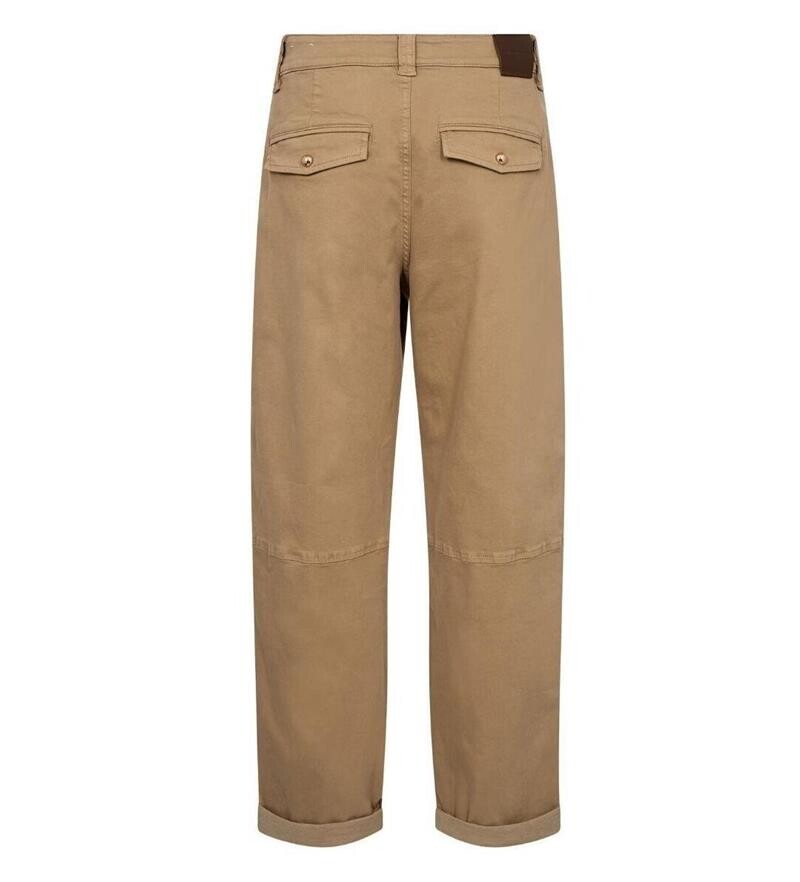 Lækker buks med ankellængde og fin lommedetalje på fronten fra Mos Mosh. Bukserne er i en lækker bomuldsblanding med masser af stretch og er skønne at have på. De har brede bæltestropper i livet og lukkes med en rund guldfarvet knap samt lynlås. Derudover har de lodrette stiklommer i siderne samt to stiklommer med flap samt knap bagpå.