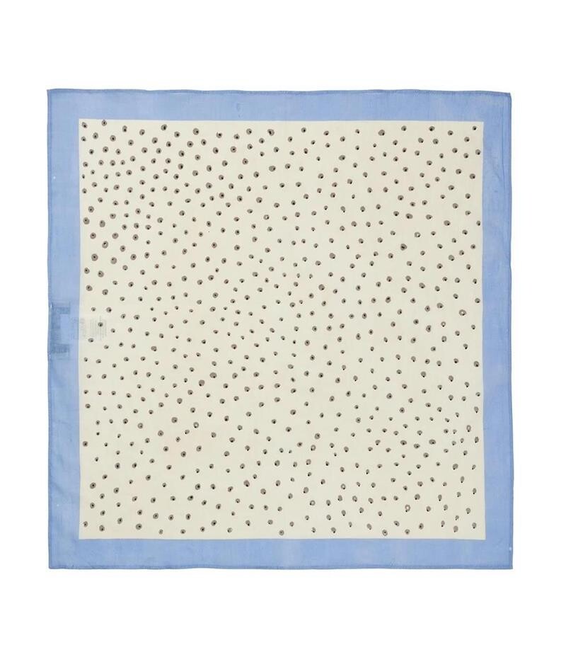 Dot tørklædet i blåt er et let og dekorativt tørklæde i en blød kvalitet med et fint, håndtegnet prikket mønster fra Sollys Laundry. Den kvadratiske form og kontrastkanten gør det nemt at style om halsen, i håret eller på tasken.