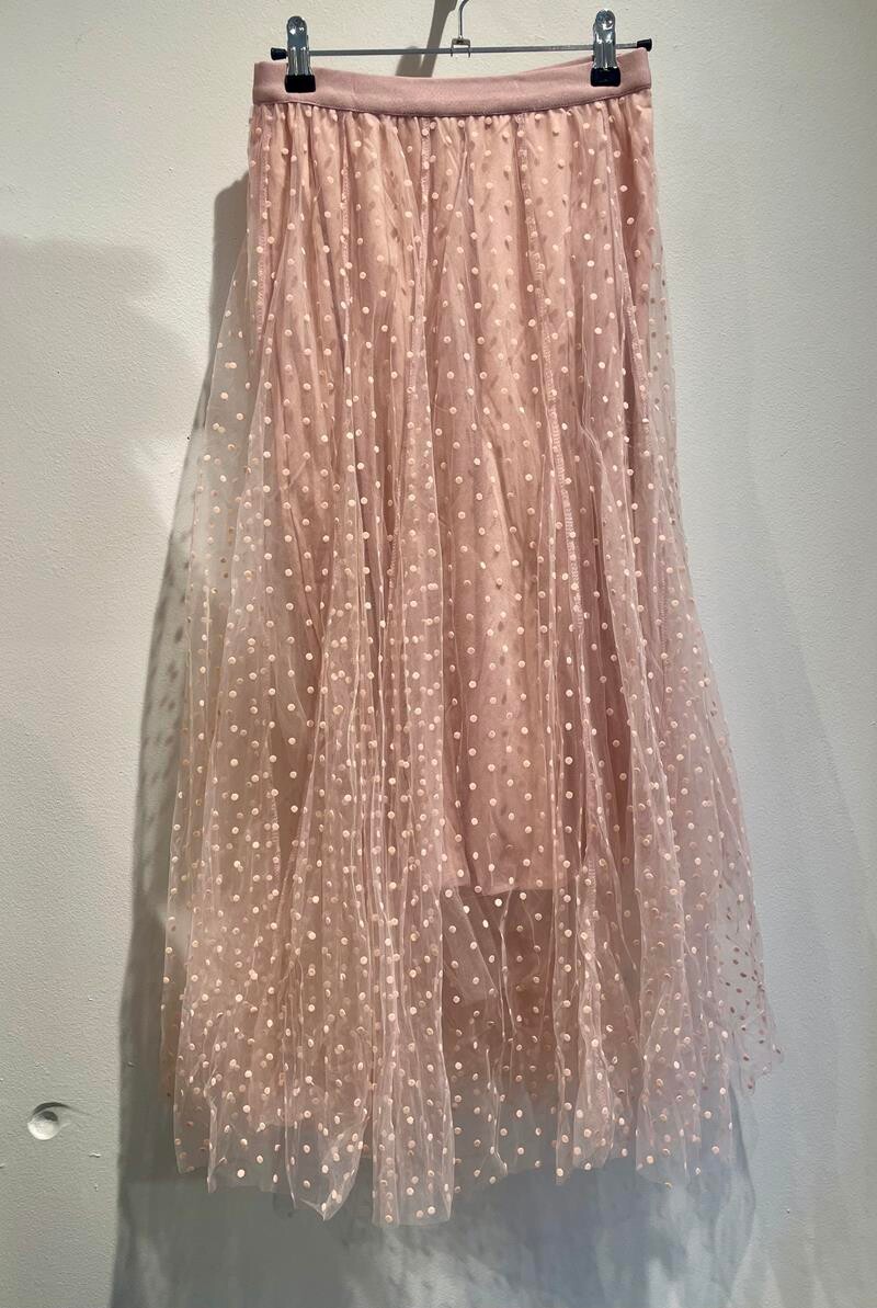 Smuk rosa farvet tyl nederdel med prikker fra Amace Cph. Nederdelen er med elastik i taljen og med et kort skørt under.