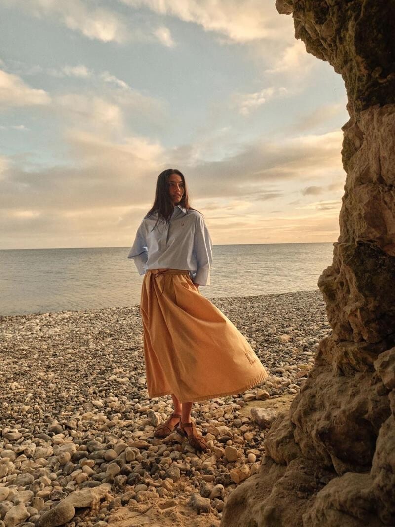 Denne lange nederdel fra Mos Mosh har et let og afslappet udtryk med en behagelig, elastisk talje. Den løse silhuet skaber et smukt fald og gør den nem at style både casual og mere feminint. En alsidig model, der fungerer perfekt med både skjorter, strik og lette toppe.