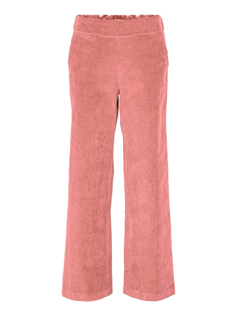 Smarte bukser fra Amaze Cph. Bukserne er lavet i ribbet babyfløjl, med brede ben og elastik i tajlen. De har lommer i siderne og paspolerede lommer bagpå.