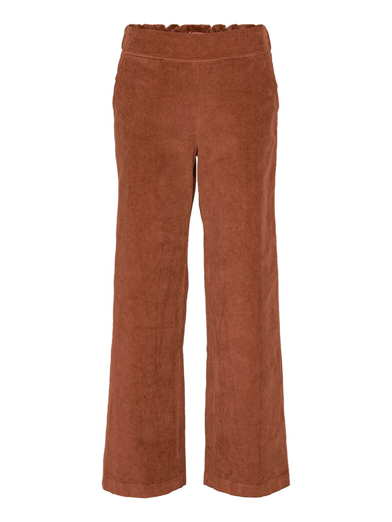 Smarte bukser fra Amaze Cph. Bukserne er lavet i ribbet babyfløjl, med brede ben og elastik i tajlen. De har lommer i siderne og paspolerede lommer bagpå.