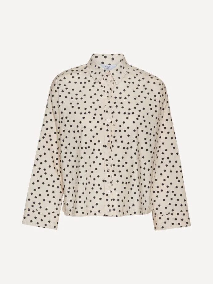 Sødeste skjorte fra Amaze Cph. Skjorten er ensfarvet med kontrastfarvede prikker og har en klassisk skjortekrave, langeærmer med manchet og knaplukning. Skjorten lukkes med knaplukninger. Den er perfekt til det kommende forår og er sød til alle anledninger.