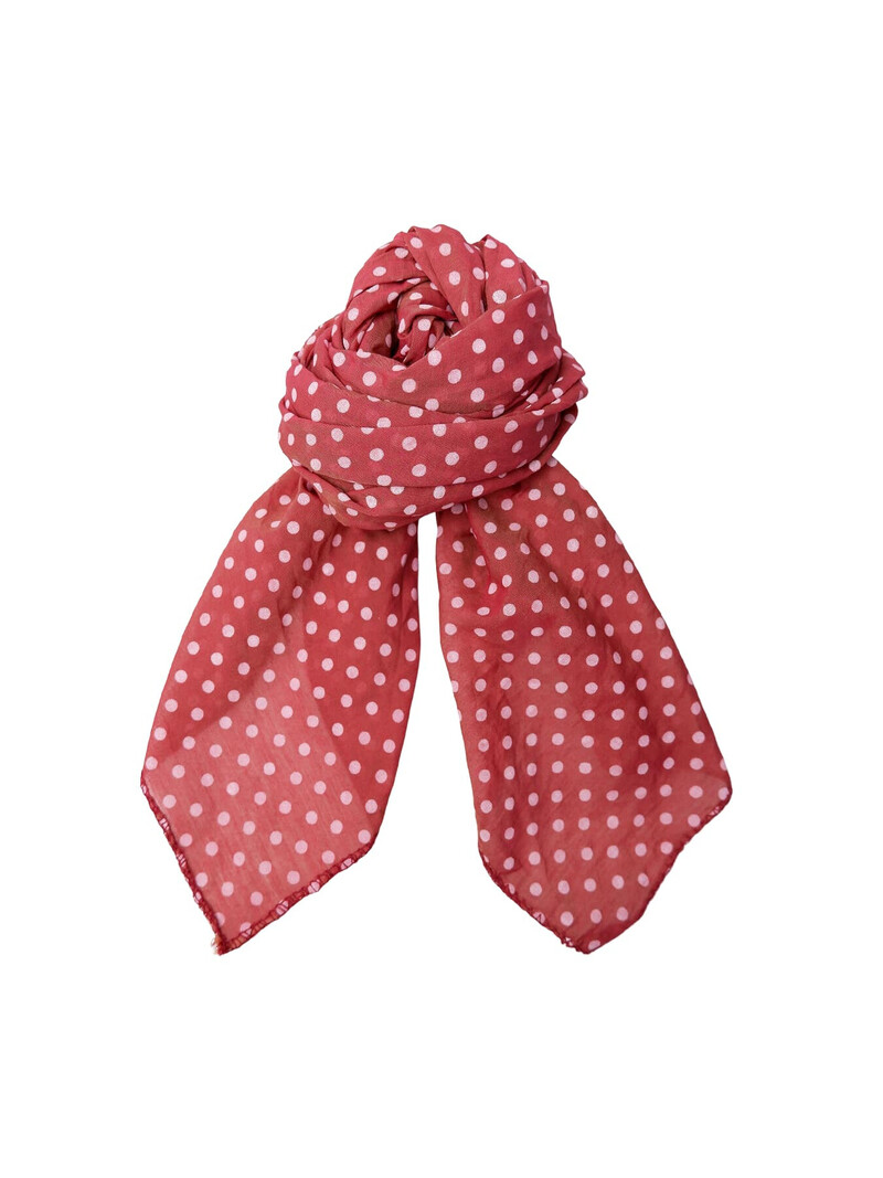 Fint tørklæde fra Black Colour. Tørklædet er bær rød med lyserøde prikker. Perfekt til at give til outfit et friskt pust.