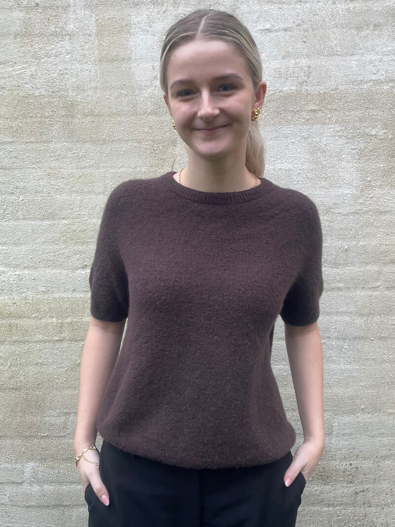 Fineste striktrøje med korte ærmer fra ByLund. Striktrøjen er lavet i den lækreste bløde kvalitet, og har en afslappende pasform. Den findes i én størrelse, og passer til alle outfits. Denne trøje er et musthave til din garderobe.