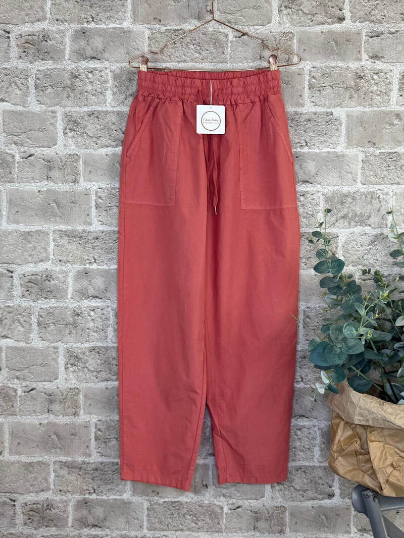 Smarte bukser fra Cabana Living. Et par afslappede bukser med fokus på både komfort og et stilrent udtryk. Bukserne har en bred elastisk talje, som giver en behagelig pasform og gør dem behagelige at have på hele dagen. Det løse og lette snit skaber et flot, flydende fald over benene og giver et afslappet look. Designet gør bukserne velegnede til både hverdagsbrug og mere uformelle anledninger, og de kan nemt styles med en enkel top samt sneakers eller sandaler for et casual outfit.
