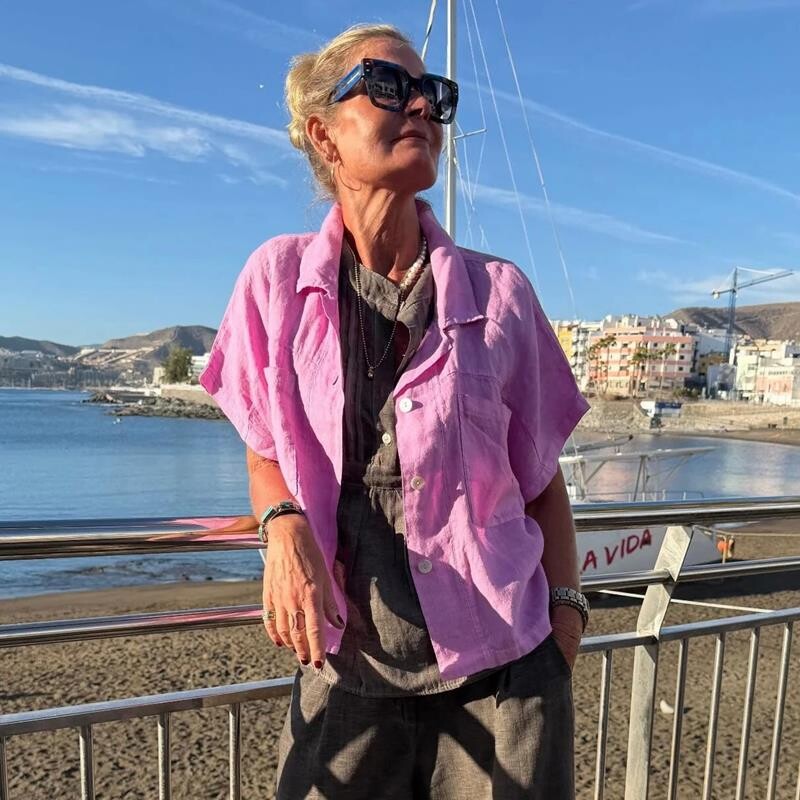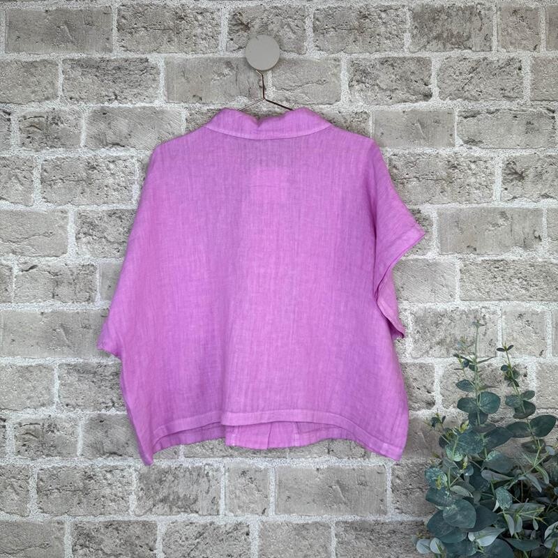 Skøn kortærmet hør skjorte fra Cabana Living. Skjorten har en lækker frisk lyserød farve, som giver en fornemmelse af sommer. Den er gennemknappet, har en klassisk skjortekrave og to store frontlommer uden flap foran.