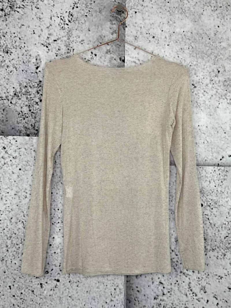 Lækker blød T-shirt i en tynd kvalitet fra Cabana Living. T-shirten er beige med lange ærmer, rund hals og en strækbar kvalitet. Brug den under skjorter, veste og lignende.