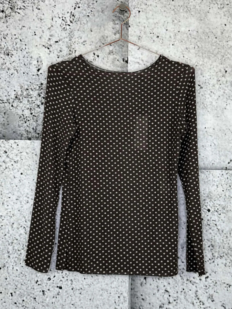 Lækker blød T-shirt i en tynd kvalitet fra Cabana Living. T-shirten er brun med hvide prikker med lange ærmer, rund hals og en strækbar kvalitet. Brug den under skjorter, veste og lignende.