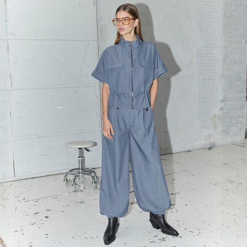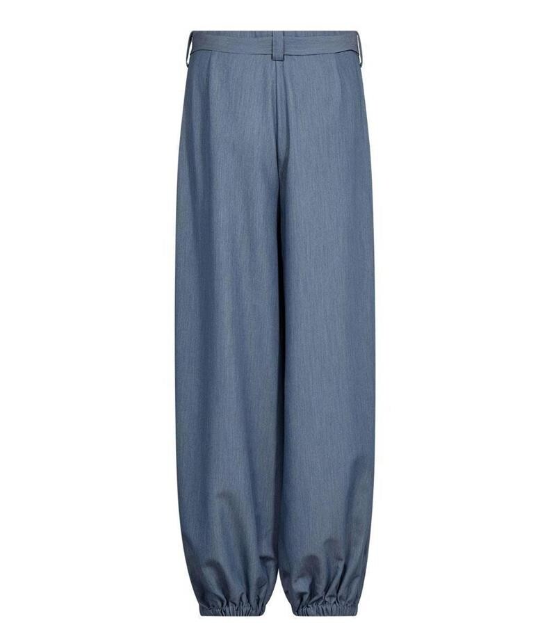 Smart Elly Balloon bukser i smuk blå nuance fra Co' Couture. Bukserne er designet i et blød og let viscose mix, der falder blødt. De har en afslappet silhuet med stofbælte i taljen og skrå lommer. Benene er afsluttet med elastik kanter.