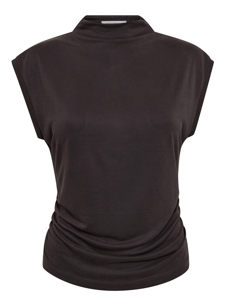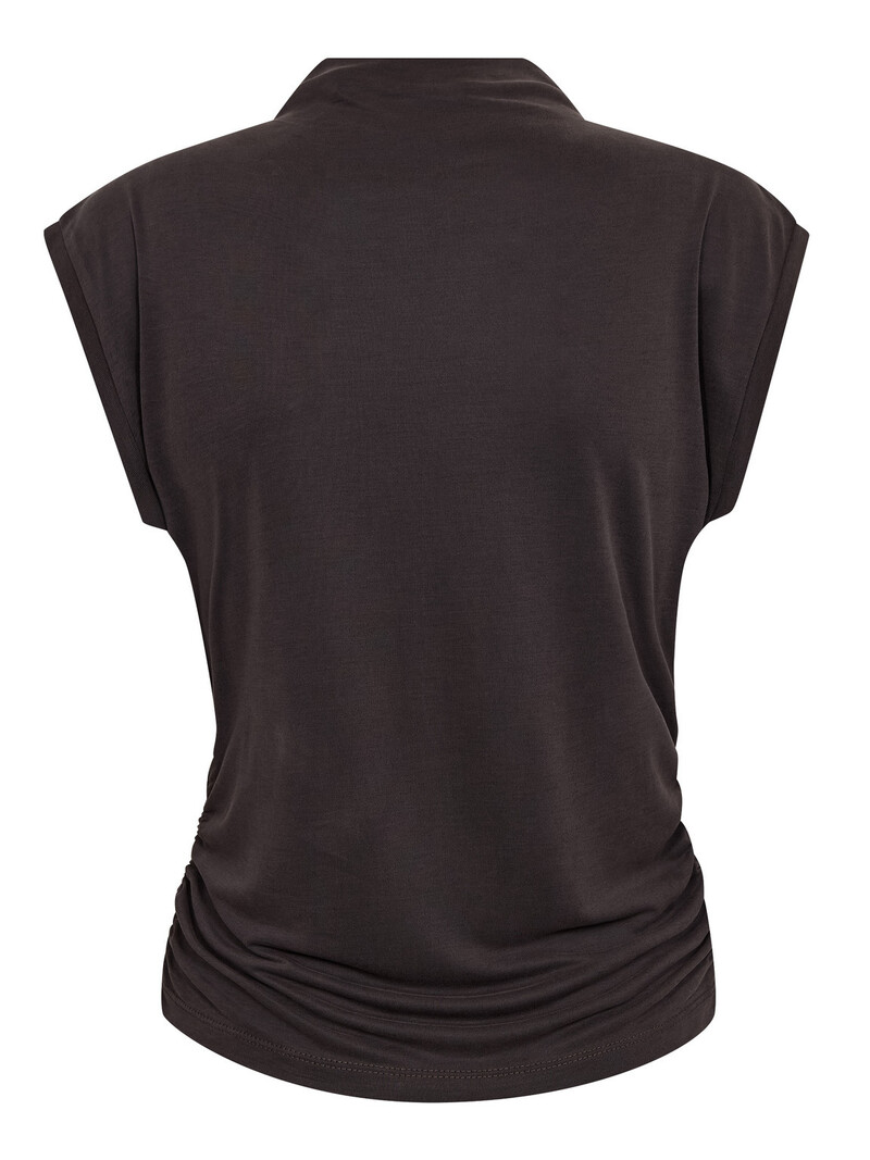 Lækker og elegant mørkegrå T-shirt fra Co'Couture. En skøn basis T-shirt med et moderne twist, fremstillet i en blød og lidt kraftigere kvalitet, der giver et flot fald og en eksklusiv fornemmelse mod huden. Den er designet med rund hals, korte ærmer og et lige snit, som gør den nem at style med alt fra jeans og nederdele til under en blazer.