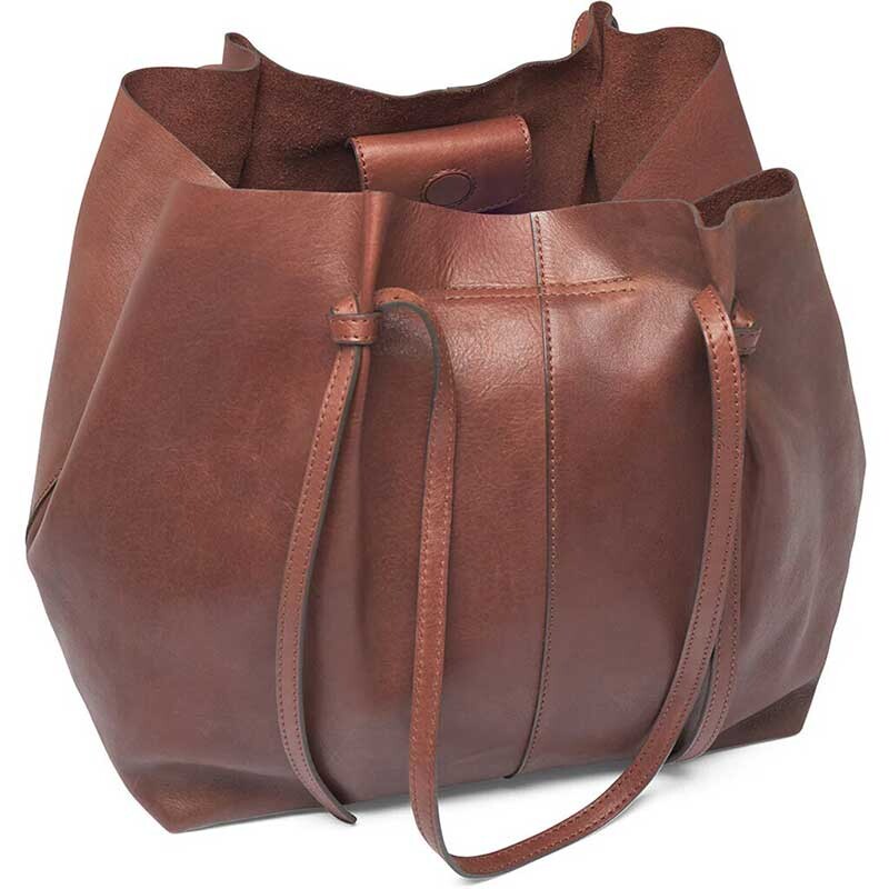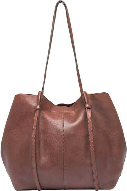 Fin læder shopper i brun fra Depeche. Tasken har en trykknap & magnetknap øverst, et rummeligt hovedrum og justerbar stropper. Tasken er i blød skindkvalitet