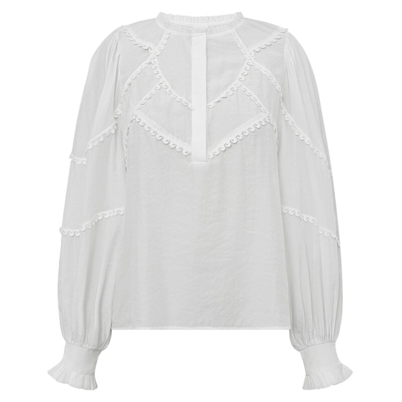 Smuk bluse med smal blonde og pompøse ærmer fra Gossia.