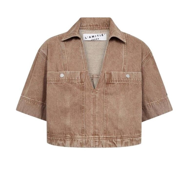 Smart cognac farvet denim top fra Haute L'amitié med cropped box fit. Drew Denim toppen er designet med korte ærmer, krave samt V-udskæring og store brystlommer. Det bløde denim materiale, gør den super komfortabel.