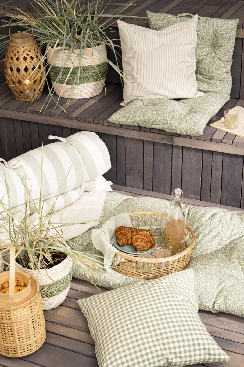 IB LAURSEN KURV, LILLE CREME M/GRØN STRIBE