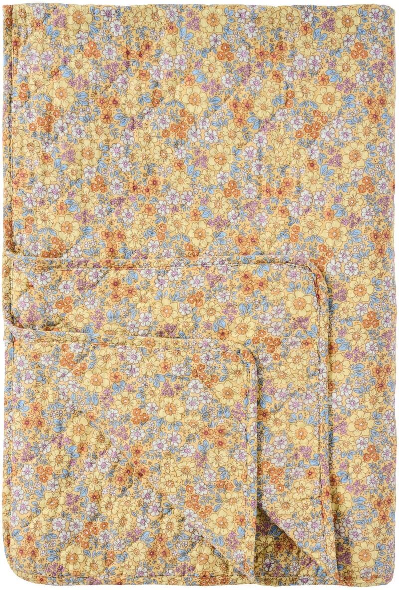 Lækkert, vatteret tæppe i bomuldskvalitet i skønne farver og med dekorativt print fra Ib Laursen.