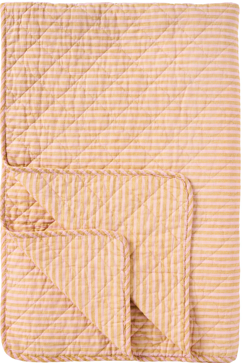 Lækkert, vatteret tæppe i bomuldskvalitet i skønne farver og med dekorativt print fra Ib Laursen.