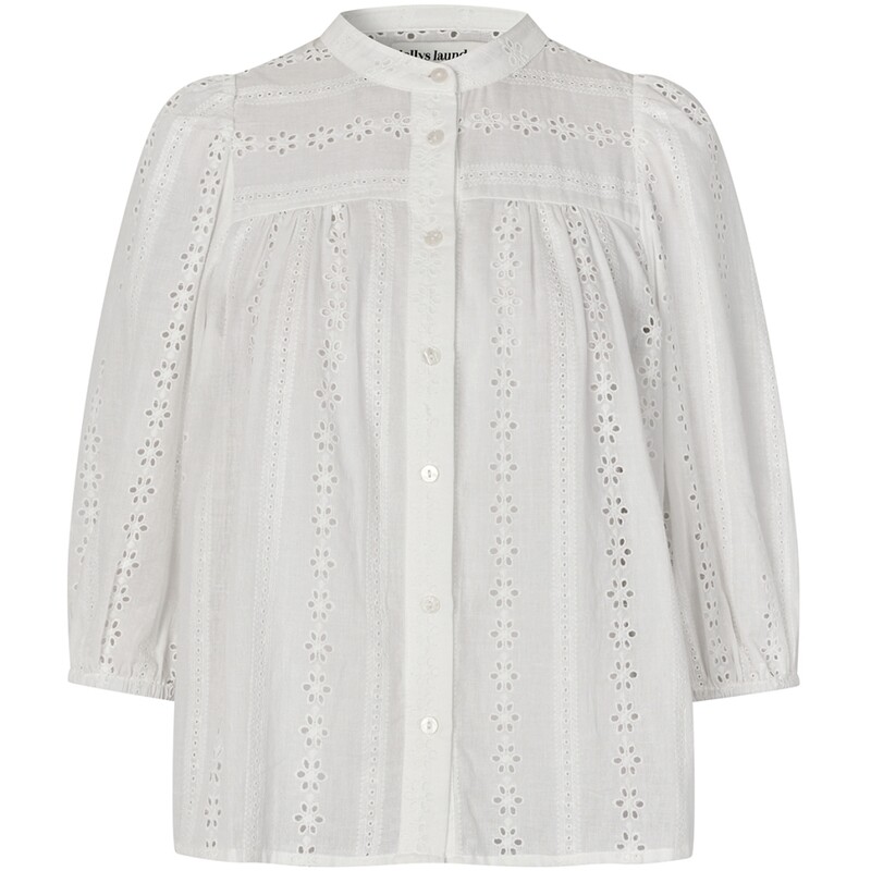 Hvid skjorte fra Lollys Laundry er en feminin skjorte i en smuk broderie anglaise-kvalitet. Den klassiske hvide farve og de fine broderede detaljer giver skjorten et elegant og tidløst udtryk, mens den lette pasform skaber en blød og feminin silhuet.