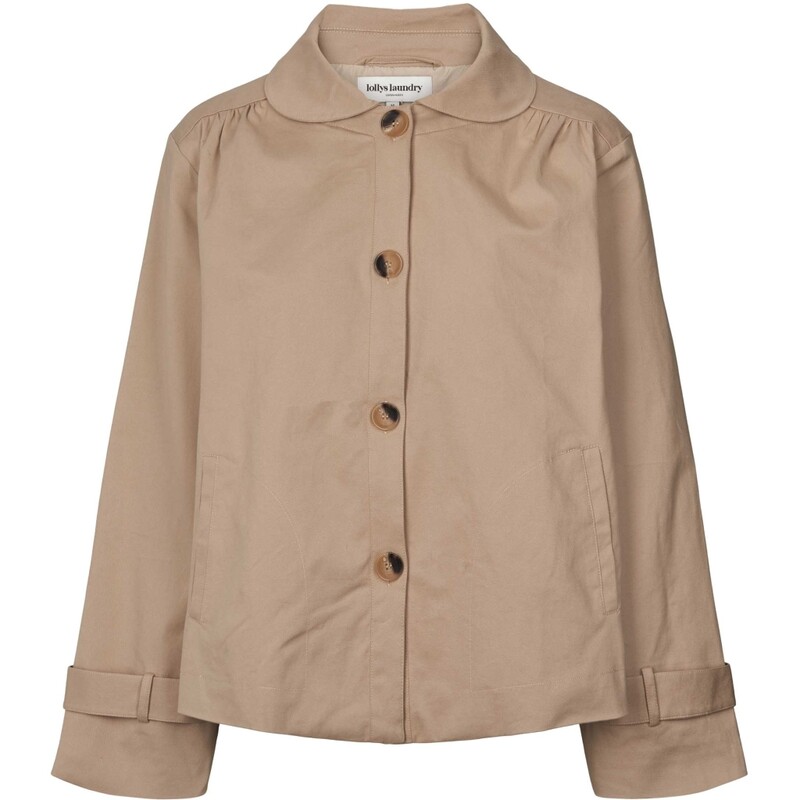 Fineste jakke fra Lollys Laundry. Jakken er en ægte Lollys-klassiker – en moderne fortolkning af den korte trenchcoat. Med sin elegante silhuet, fine detaljer og lette pasform er den et stilfuldt valg til overgangssæsonerne.