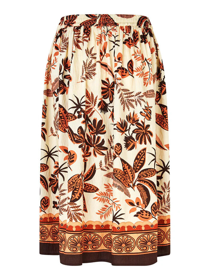Fineste midi nederdel fra Lollys Laundry. Nederdelen er en elegant midinederdel med et kunstnerisk print. Det feminine fald kombineret med elastik bagpå giver en behagelig og flatterende pasform.