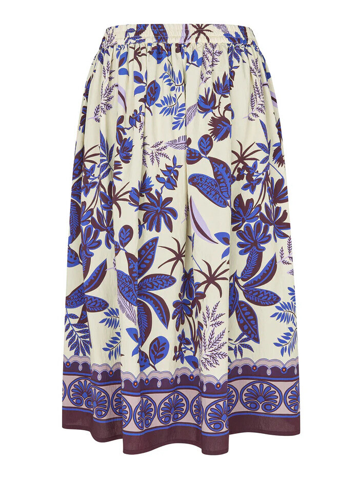 Sødeste midi nederdel fra Lollys Laundry. Nederdelen er en elegant midinederdel med et kunstnerisk print og fås i to smukke variationer. Det feminine fald og elastikken bagpå sikrer en behagelig og flatterende pasform.