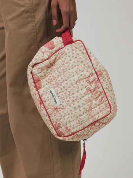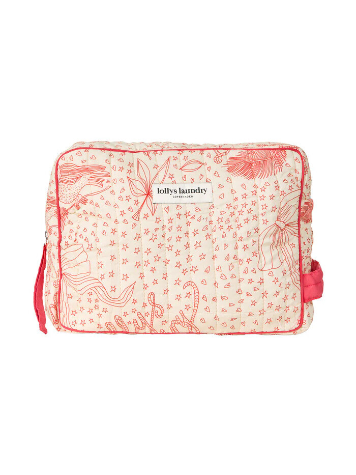 Sød makeuptaske fra Lollys Laundry. Tasken har det fineste røde print, som tilføjer et sommerligt touch. Den har et quiltet design med fine håndtegnede illustrationer i den fineste røde farve. Den rummelige form og den stabile bund gør den perfekt til både makeup og små essentials på farten.
