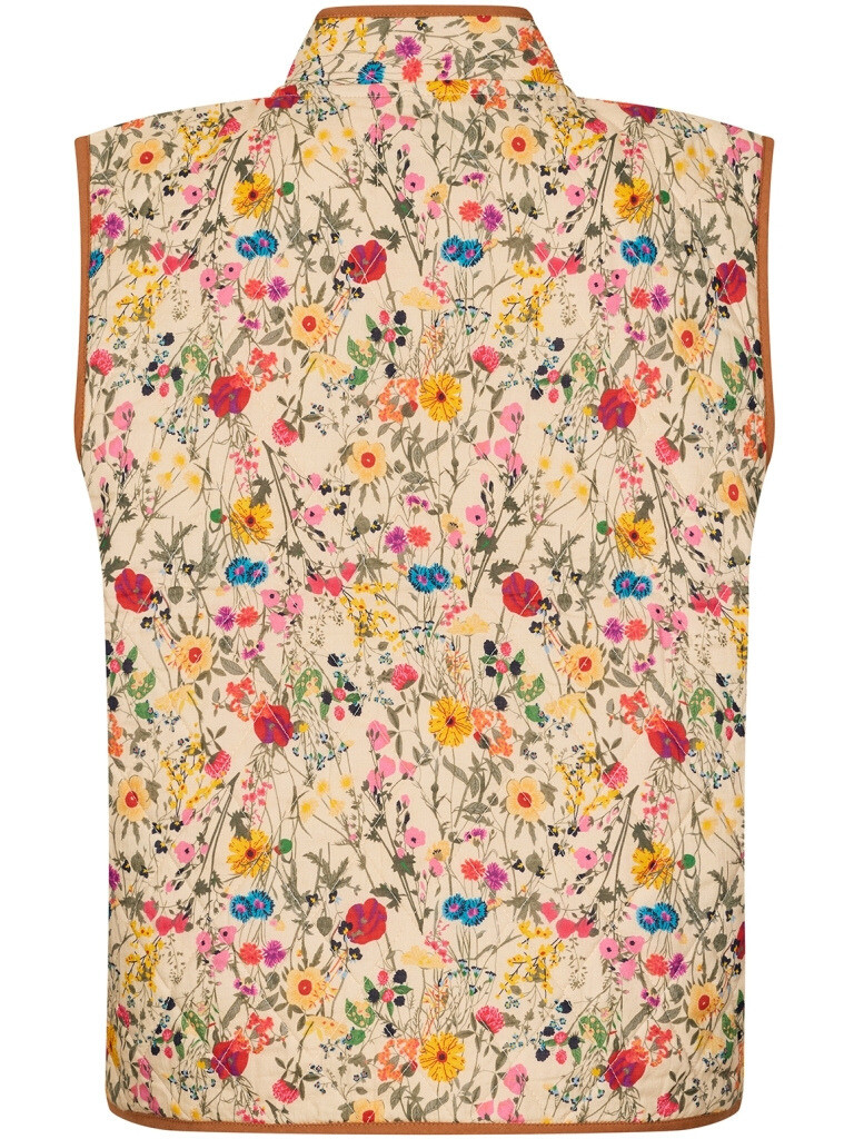 Vesten fra Lollys Laundry er en let quiltet vest med et smukt blomsterprint. Den har et detaljeret mønster med små blomster og botaniske elementer, mens kontrastkanterne giver et raffineret finish.