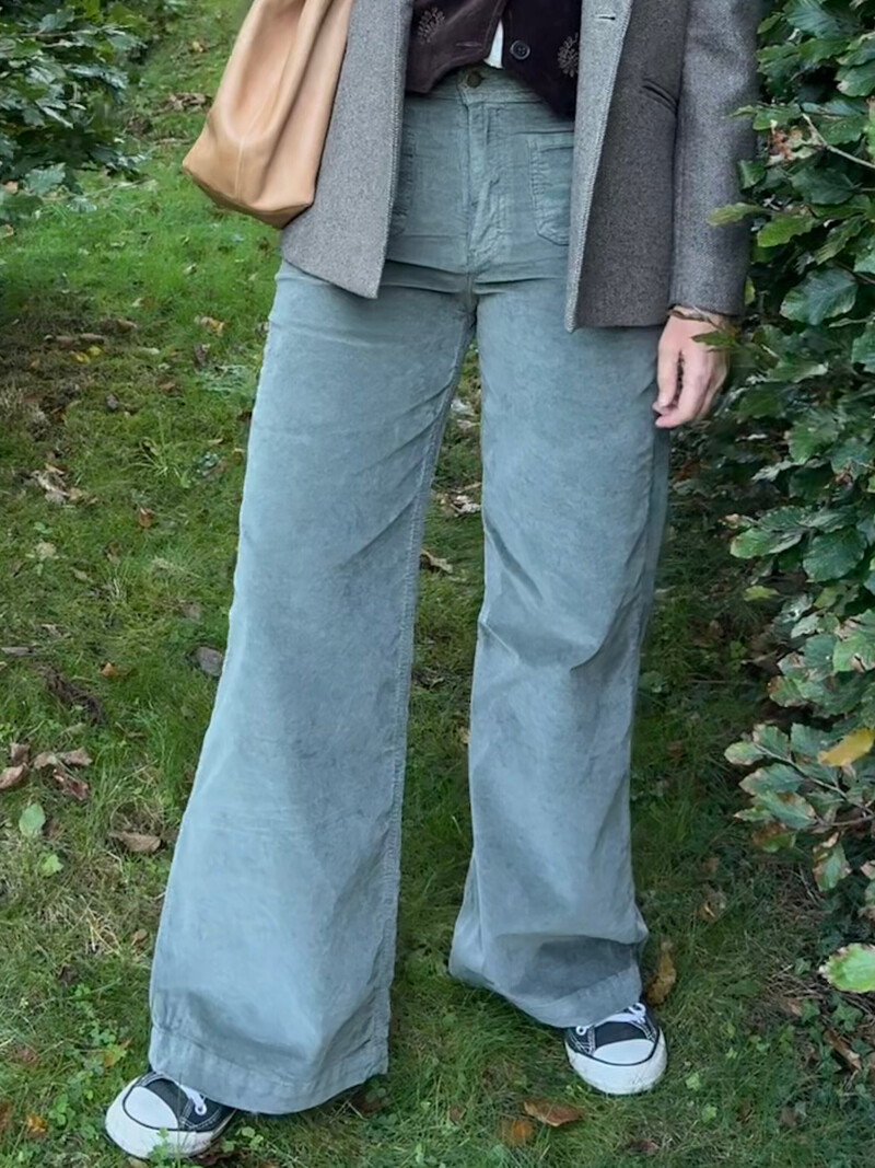 Trendy bukser i blød, smalriflet fløjl fra Maison. Bukserne har en lige pasform, der giver et moderne og afslappet look, samtidig med at de er nemme at style til både hverdag og mere festlige lejligheder. Foran har de to påsyede lommer, som giver et casual udtryk, mens lukningen består af lynlås og knap. Bukserne er ideelle, at kombinere med både skjorter, strik og toppe.