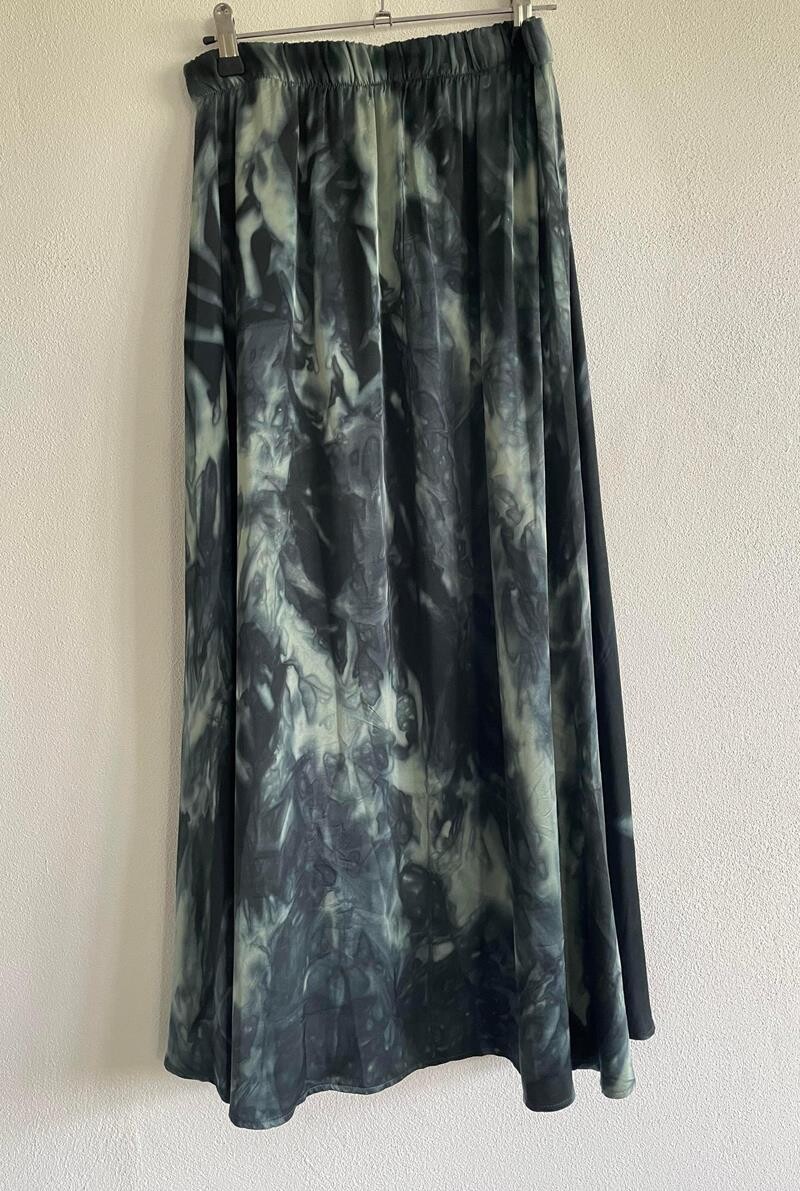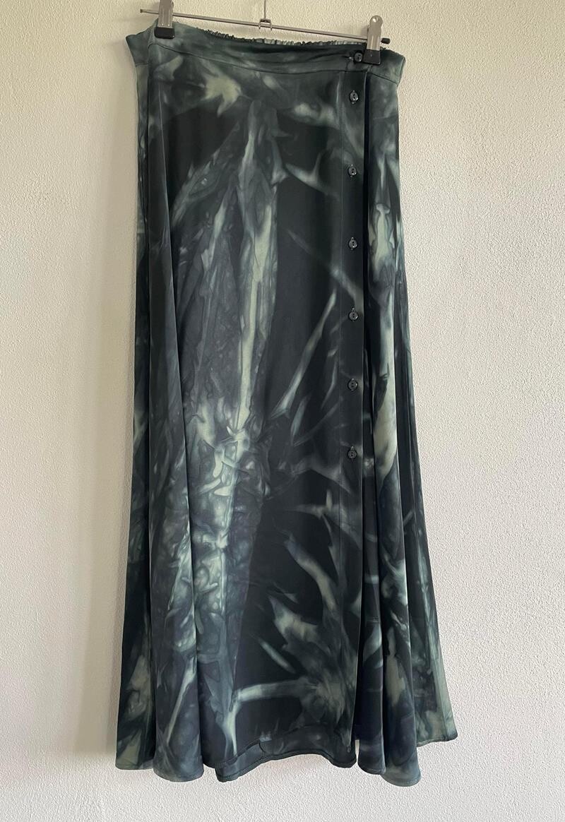 Fineste nederdel fra Maison Hotel. Denne nederdel er designet med knaplukning ned langs den ene side, og forenden et slids. Derudover er den i batik og har elastik i taljen bagpå, hvilket gør den yderst behagelig at have på.