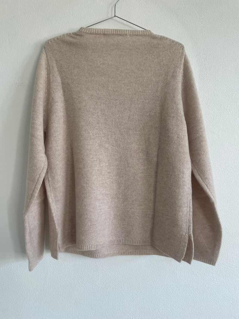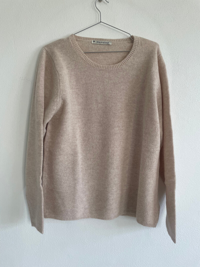 Sød cremefarvet striktrøje fra Mansted i 100% uld. Denne striktrøje er designet med lange ærmer og ribbede kanter. Den har en normal pasform og er perfekt over en skjorte.