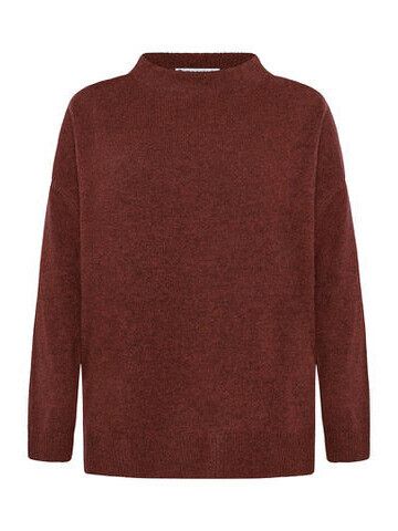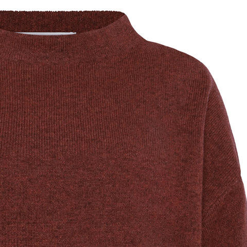 Lækker striktrøje fra Mansted. Striktrøjen har en lille krave, lange ærmer og en flot rust lignende farve.