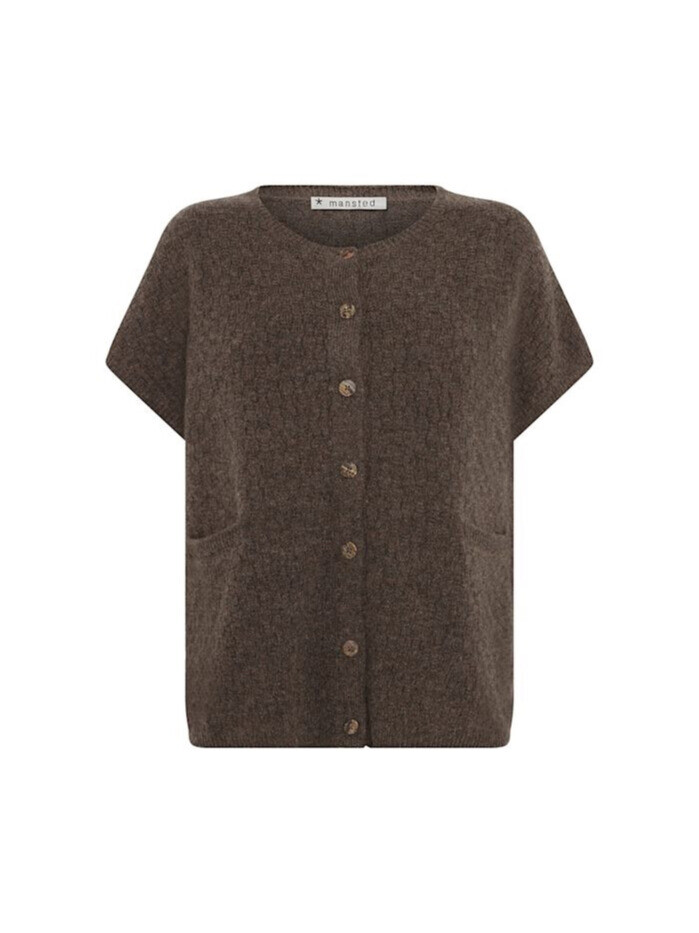Lækker vest i 100% uld fra Mansted. Denne vest er designet med et lille ærme, og det fineste strukturerede mønster. Den har knapper ned langs midten så den både kan bæres lukket og åbent.