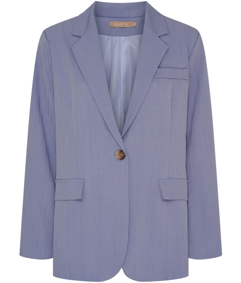 Smuk blazer fra Marta. Blazeren har lange ærmer, paspolerede frontlommer med flap og en enkelt knaplukning. Den har et diskret stribet design som giver den en fin effekt.