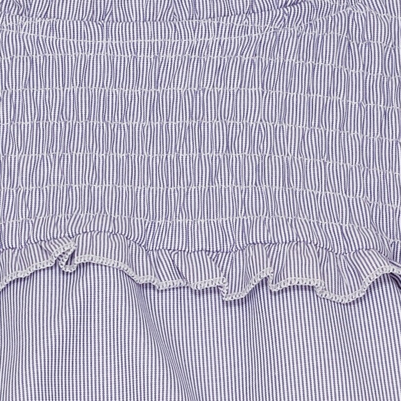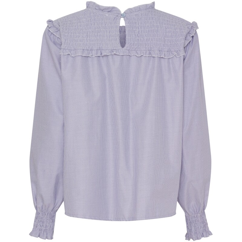 Sødeste bluse fra Marta. Blusen er designet i blå strib, og er perfekt til en basis underdel. Den er designet med rund hals og lange ærmer med smock for enden, samt fine detaljer på brystet.. Den har flæser på skuldrene, over brystet og i halsen.