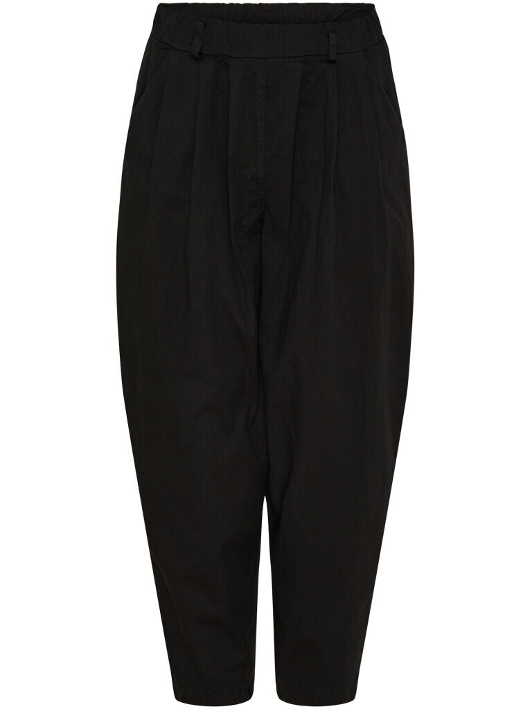Fine højtaljede bukser fra Marta i blød bomuld. Bukserne har bred elastik i taljen, læg foran og lommer i siderne. De er designet med cool barrel pasform, som er rummelig øverst og smal ved anklen.