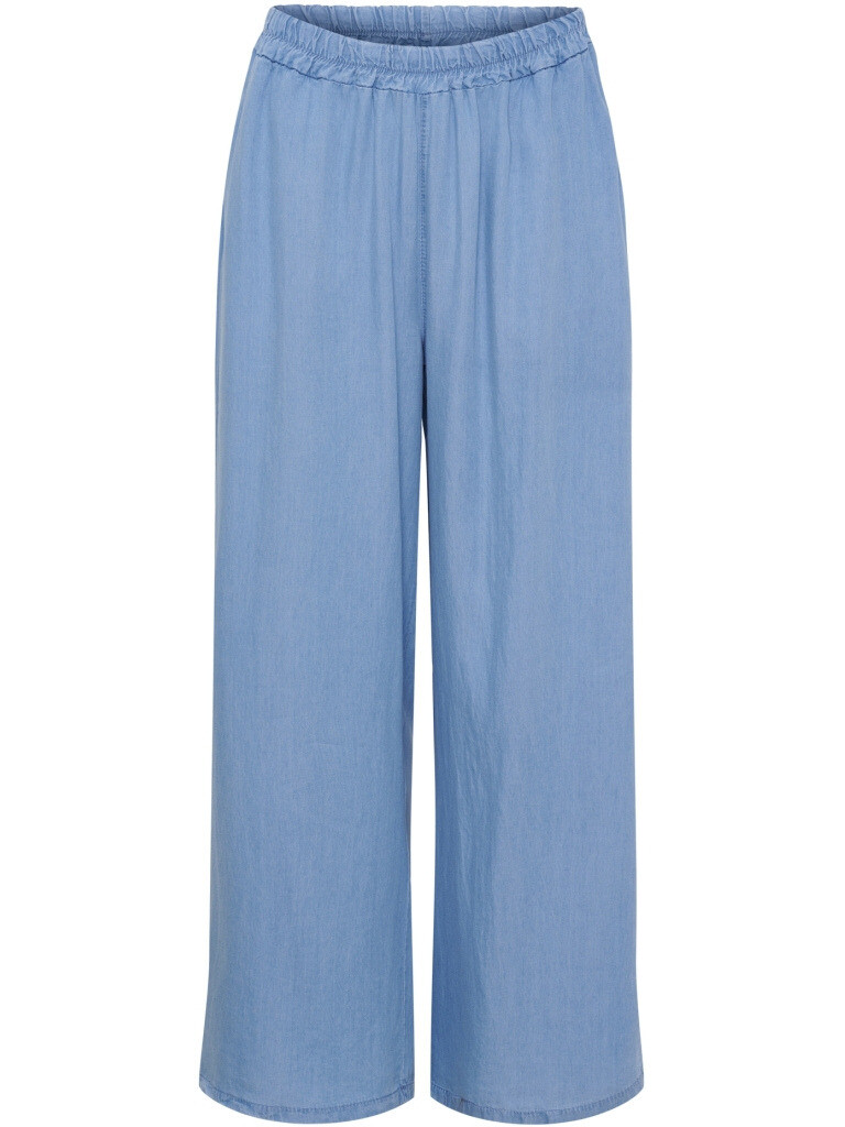 Smarte bukser med brede ben fra Marta. Bukserne har en elastisk kant i taljen som gør dem yderst behagelige at have på, samtidig med, at materialet er let og luftigt. Den afslappende pasform giver dig fri bevægelse hele dagen. I siderne er der lommer.