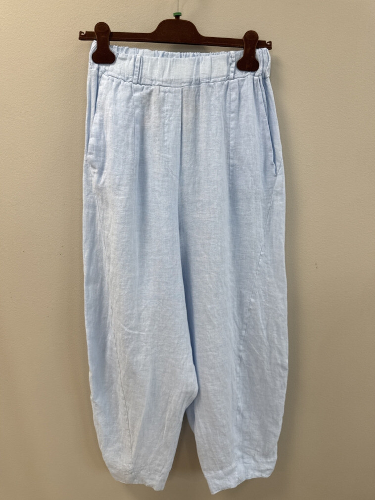Smarte hørbukser fra Marta. Bukserne er fremstillet i 100% hør, og har en let og afslappet pasform i den velkendte barrel model. I taljen har de elastik, hvilket gør bukserne ekstremt behagelige at have på.