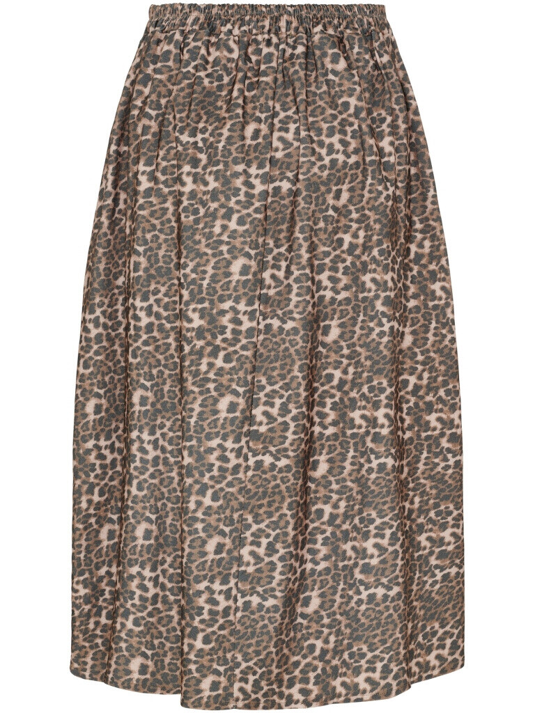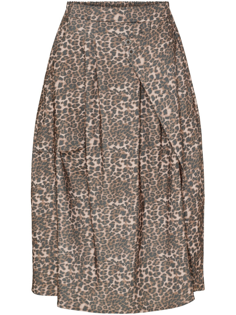 Fineste nederdel fra Marta. Nederdelen har en løs pasform og er designet med en skrå lomme i højre side. I venstre side prydes den af en elegant slå-om detalje, som er fastgjort med to knapper. Taljen er elastisk, hvilket giver ekstra komfort.