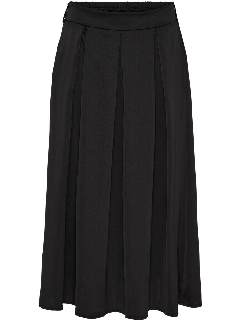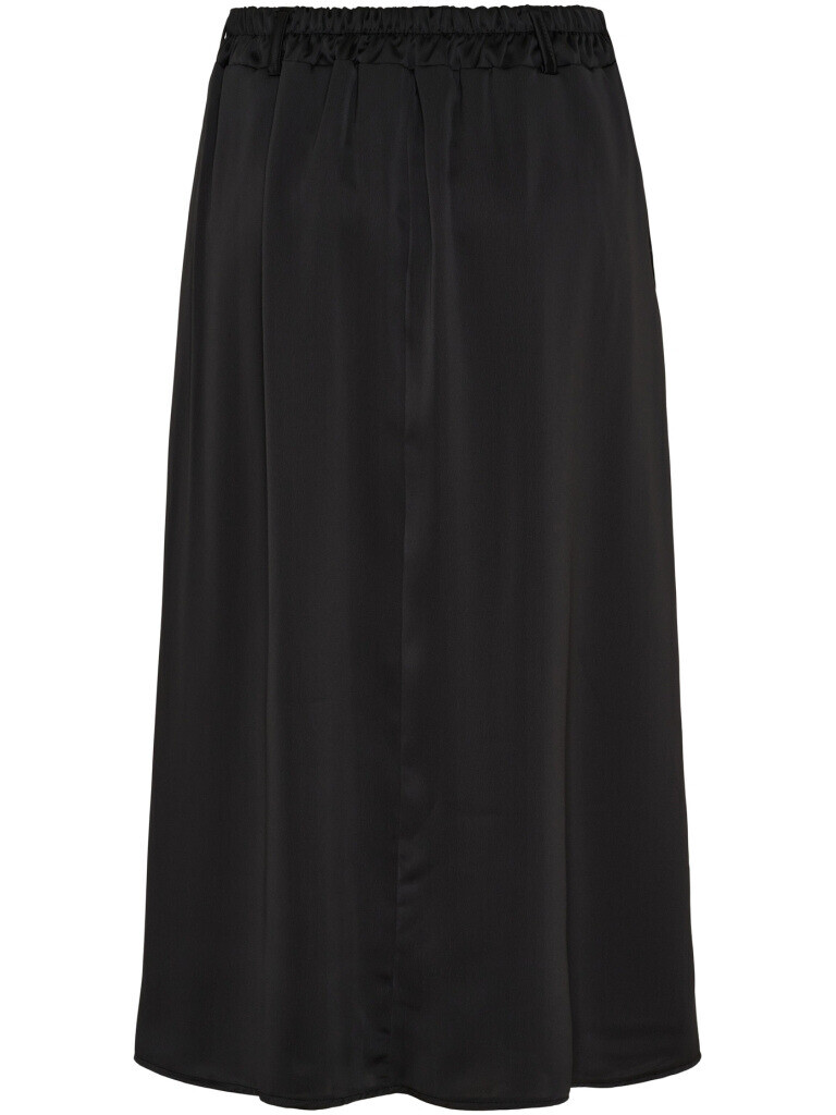 Elegant, lang satin-nederdel fra Marta med smukke læg og praktiske sidelommer. Nederdelen er designet med elastik bagpå i taljen, bæltestropper samt et flot, let fald i skørtet.