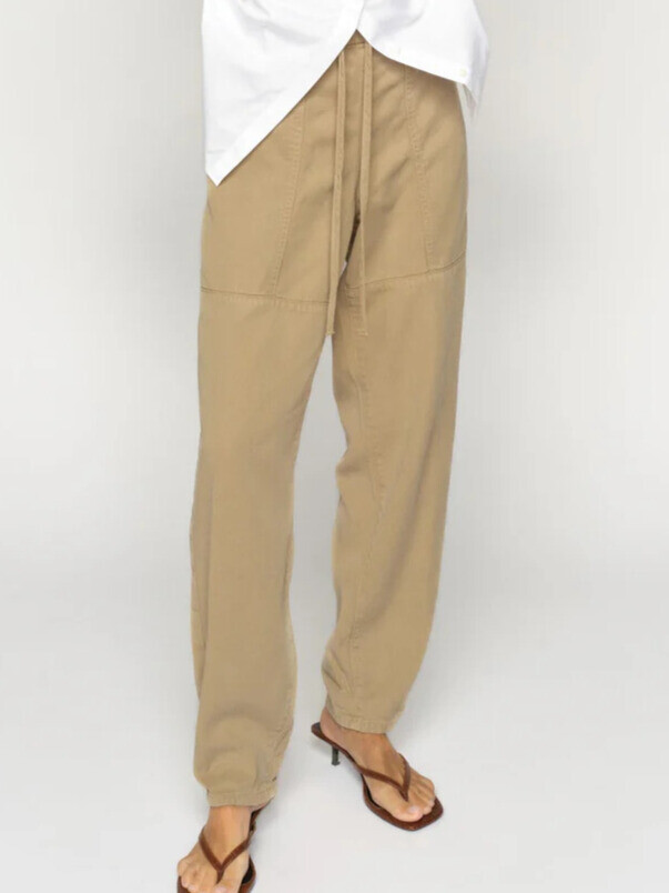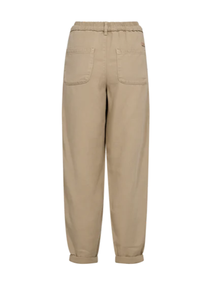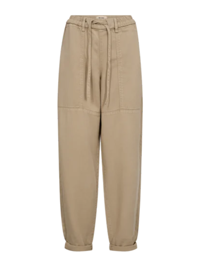 Smarte bukser fra Mos Mosh. Disse bukser kombinerer komfort og stil med deres bløde, lette materiale, der giver et afslappet og ubesværet udtryk. Den elastiske talje med bindebælte og de diskrete sømdetaljer tilfører et moderne, utility-inspireret præg. Style dem med en indstukket bluse eller en enkel T-shirt for et afslappet hverdagslook.