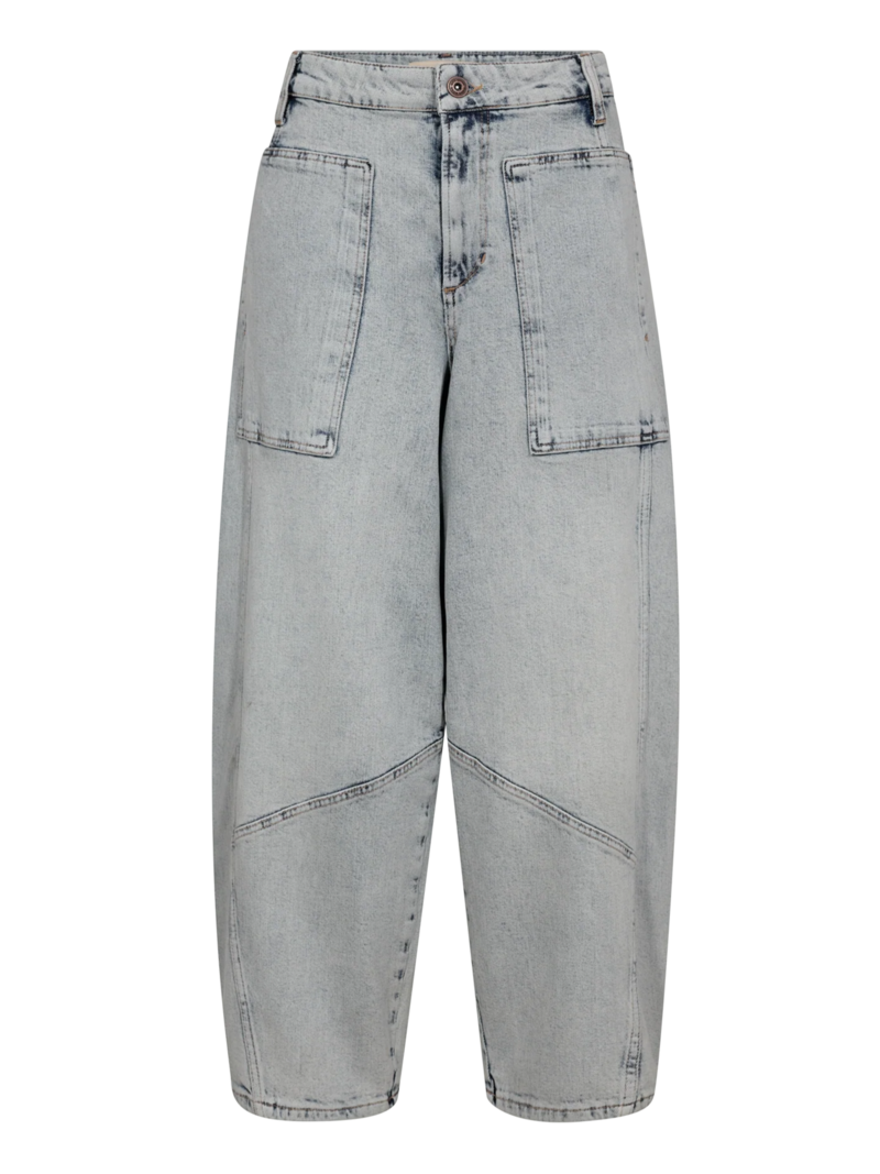 Cool jeans fra Mos Mosh. Et nutidigt statement-piece, hvor form og funktion mødes. Disse jeans har en barrel-inspireret silhuet med høj talje og markante sømdetaljer, som giver et skulpturelt og moderne udtryk. Fremstillet i økologisk bomuld med let stretch for optimal komfort og struktur. Style dem med tætsiddende toppe eller bløde strik for et chikt og afslappet off-duty look.