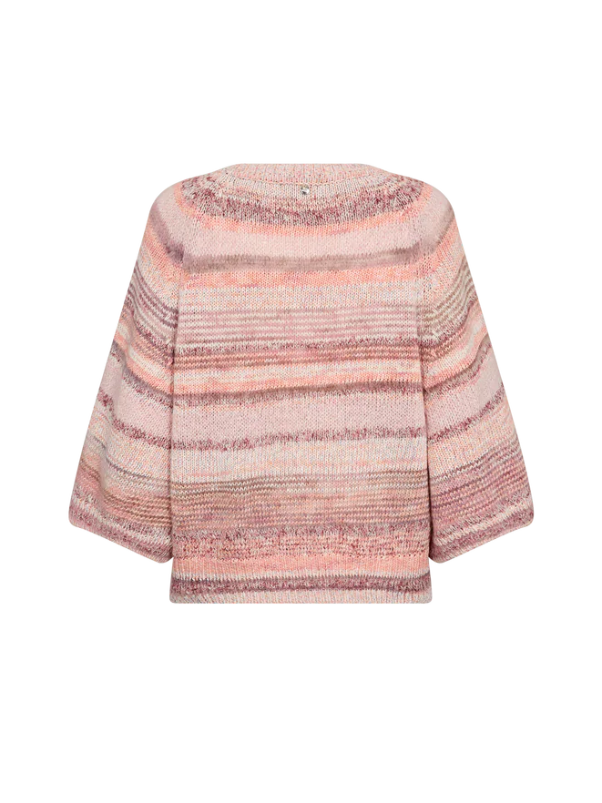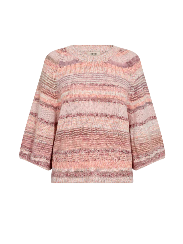Smukkeste unikke strik fra Mos Mosh. Denne bløde strik er et hyggeligt statement med en afslappet, oversized pasform. Den har 3/4-ærmer, rund hals og et flot meleret mønster, som tilfører både varme og struktur. Ideel til lag-på-lag – style den med jeans eller en let nederdel for et afslappet, men stilfuldt udtryk.