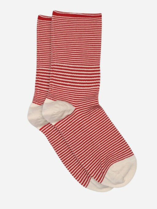 Søde røde strømper fra MP. Strømperne har smalle røde striber.