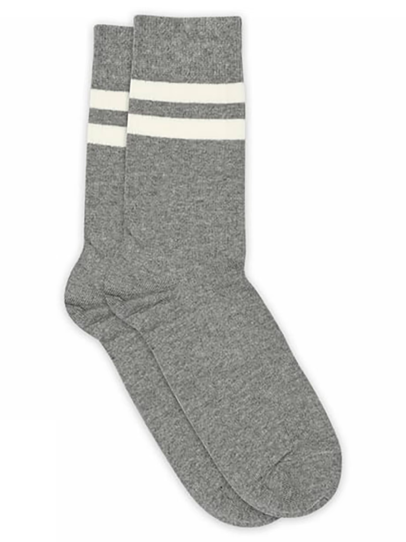 Lækre bomuldsstrømper fra MP. Strømperne er grå med to hvide striber.