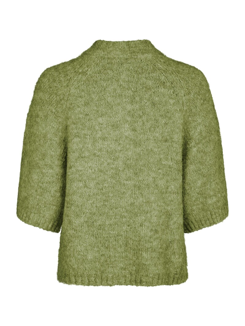 Smukkeste, blødeste strik cardigan fra Neo Noir. Denne strikkede cardigan er designet med tre guldknapper med struktur øverst og åbenstående forneden. Den har en højere hals og 3/4 ærmer, som er med til at give et både afslappet men fint og feminint udtryk.
